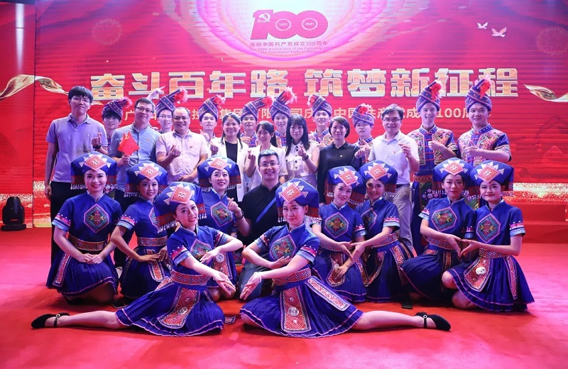6月29日,“奮斗百年路 筑夢新征程”北投集團慶祝中國共產(chǎn)黨成立100周年文藝匯演在廣西音樂廳舉行。廣西工程咨詢集團、北投信創(chuàng)集團、北投能源集團聯(lián)合出演情景歌舞《壯鄉(xiāng)兒女頌黨恩》,突出少數(shù)民族元素、脫貧攻堅工作,以壯話形式歌唱脫貧后壯鄉(xiāng)兒女的幸福生活,載歌載舞為建黨百年獻上誠摯祝福,同時將熱烈喜慶的氣氛推向高潮。