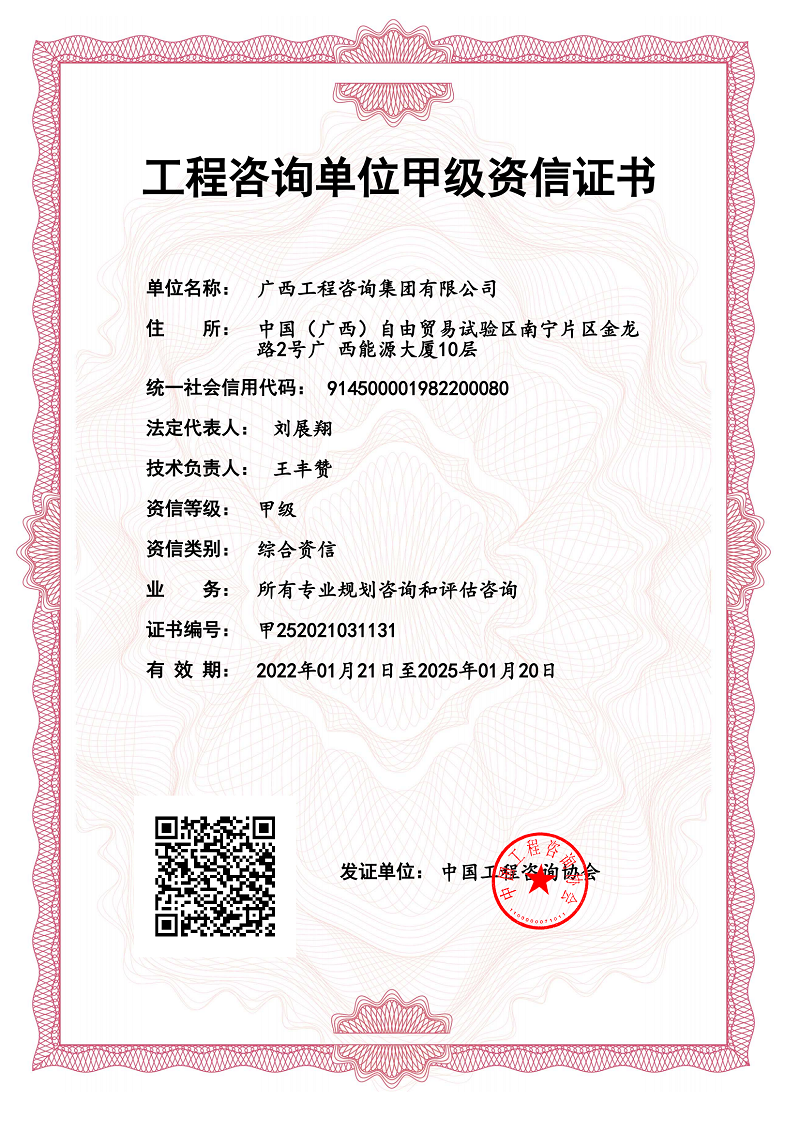 工程咨詢單位甲級綜合資信證書(所有專業(yè)規(guī)劃咨詢和評估咨詢)
