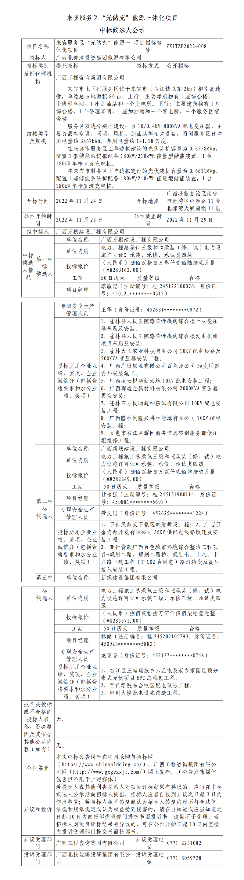 來賓服務區(qū)“光儲充”能源一體化項目中標候選人公示