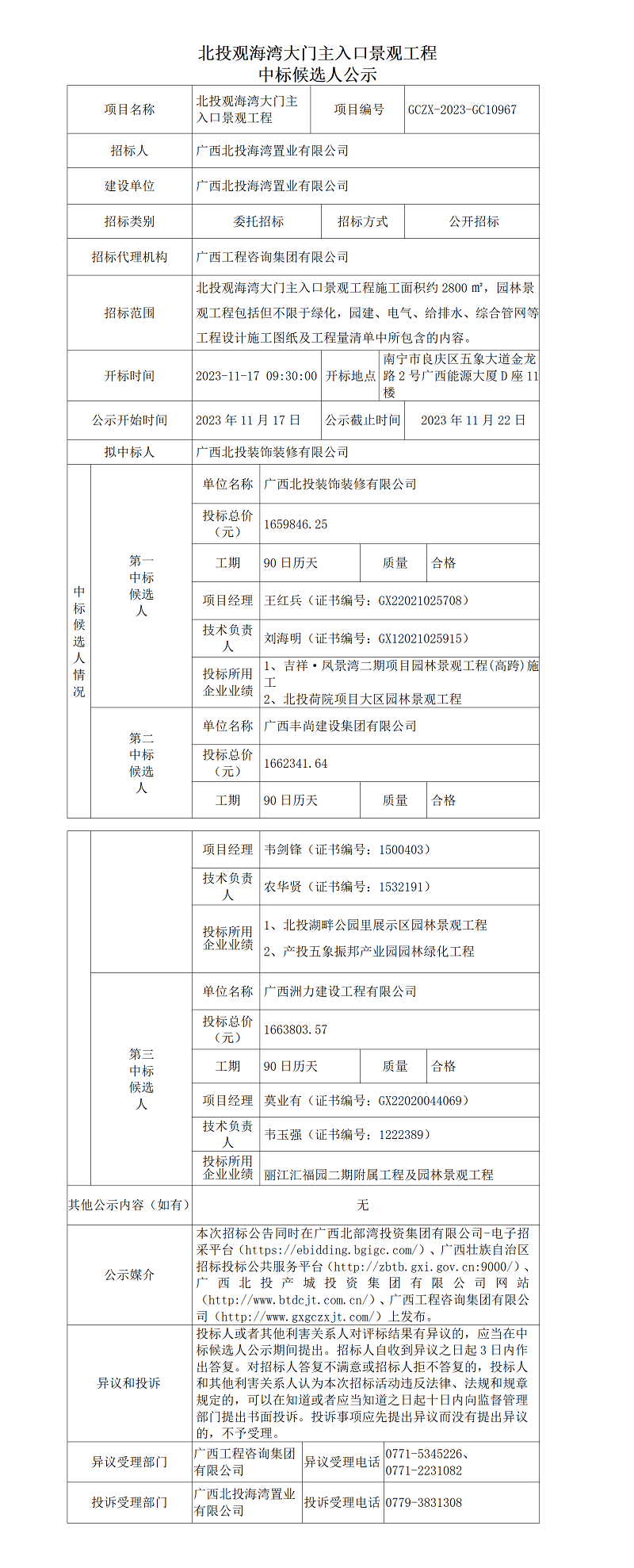 北投觀海灣大門主入口景觀工程 中標候選人公示